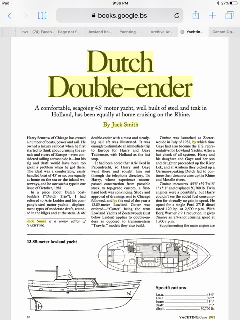 Builder: Lowland Trawler; Built at DeVries Shipyard, Holland